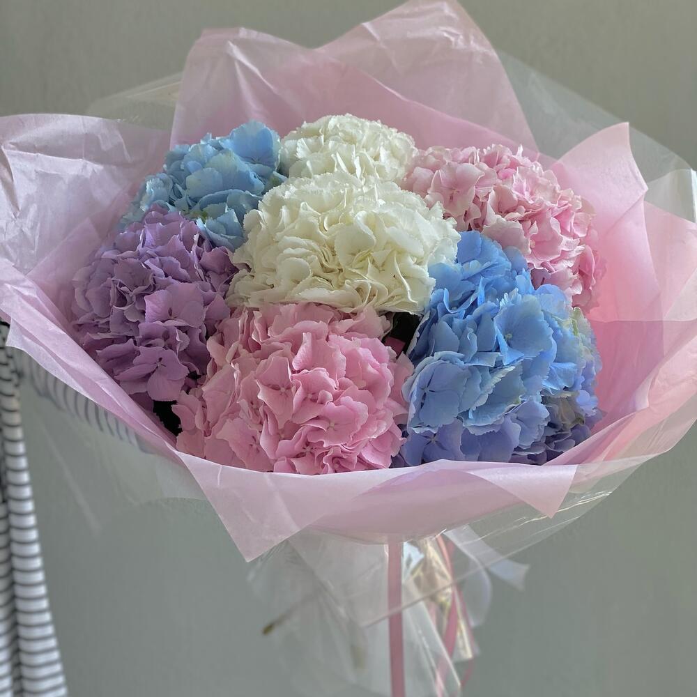 Букет похож на облачко, 7 гортензий разных цветов приведут в восторг дорогого человека и подарят яркие эмоции ✨